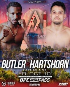 Mason “M-1000” Hartshorn returns to the cage at A1 Combat taking on undefeated prospect Royce “2 Smooth” Butler for the Flyweight title get tickets now or watch it live on UFC Fight Pass.